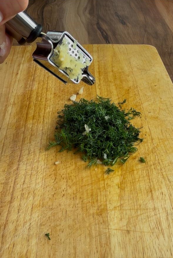 - Мелко нарежьте укроп и чеснок