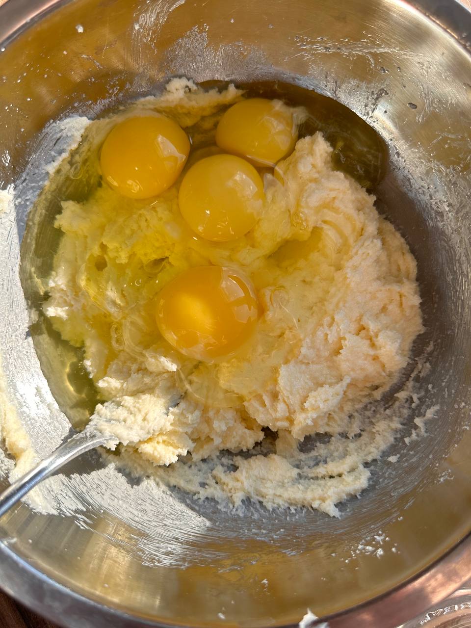 - Растираем масло с сахаром, добавляем яйца, и перемешиваем до однородной массы.
