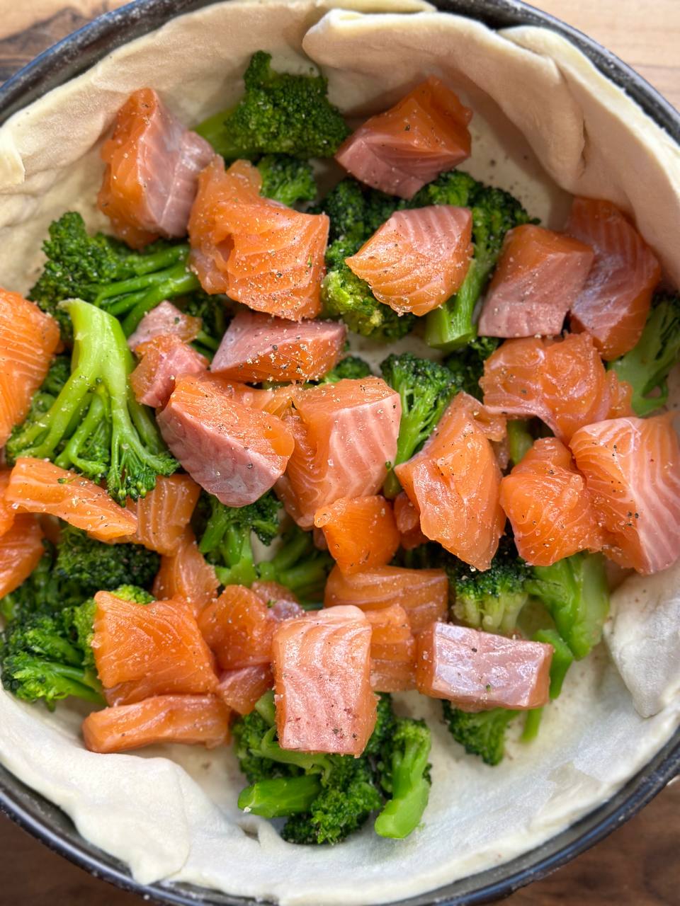 Киш с лососем и брокколи