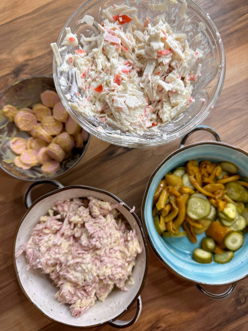 - Для начинки нарезаем/трем любимые ингредиенты и смешиваем