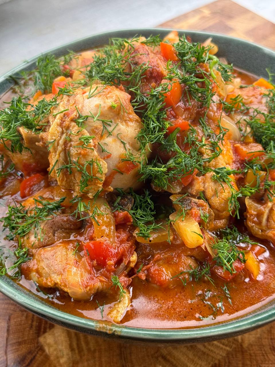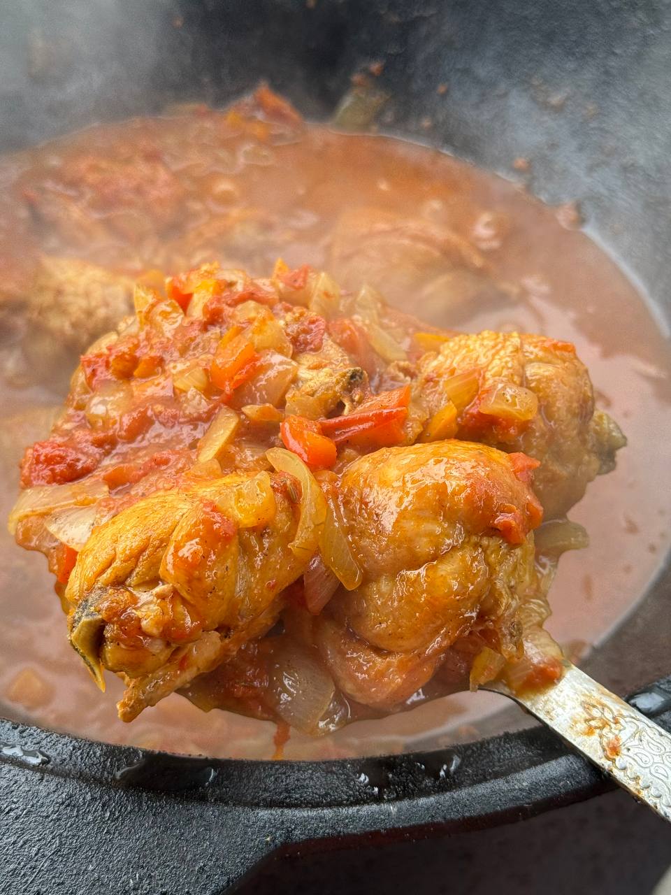 - Тушите все вместе под крышкой на среднем огне еще 20-30 минут, пока курица не станет мягкой и полностью пропитается ароматами овощей и специй.