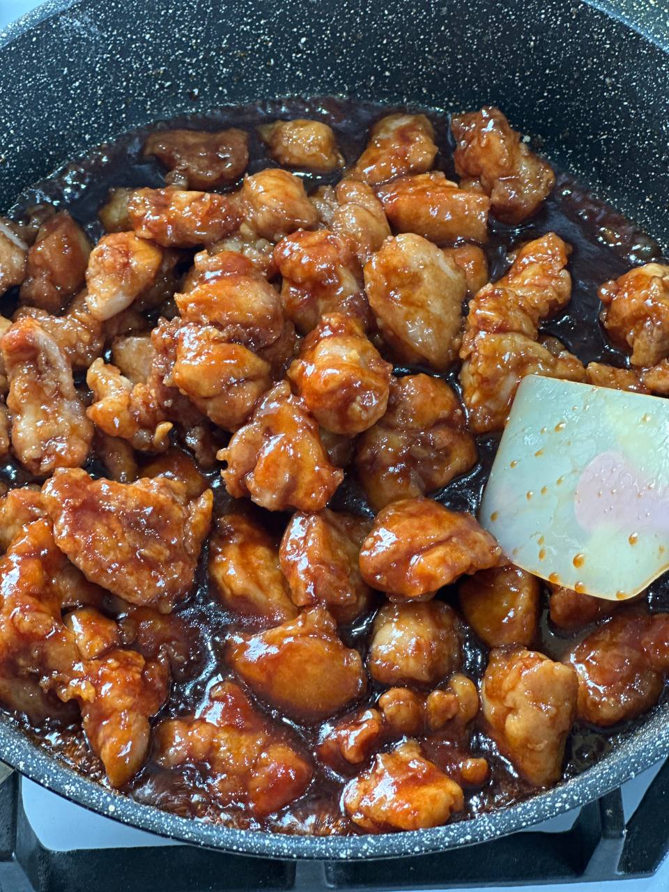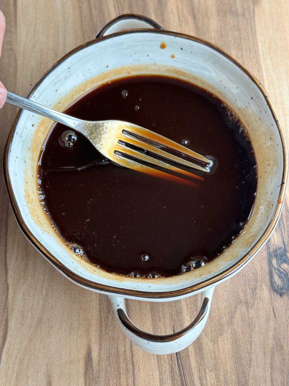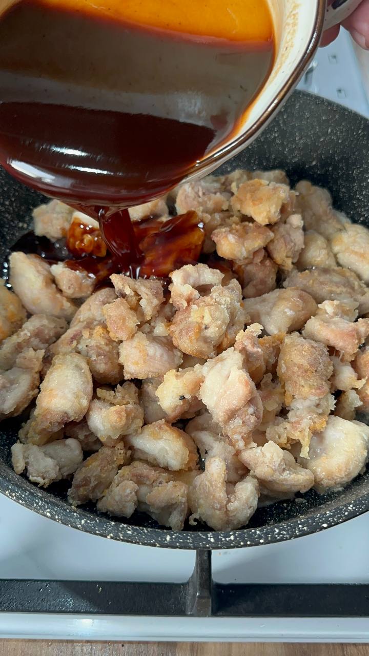 - Заливаем смесью из меда, кетчупа и соевого соуса