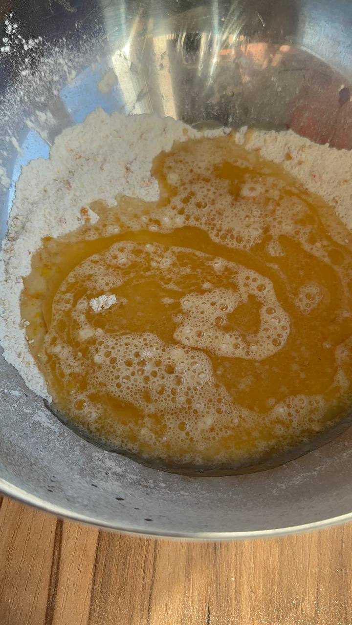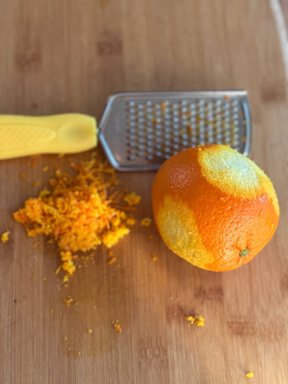 - Из апельсина подготавливаем 2 ст.л цедры, смешиваем с мукой