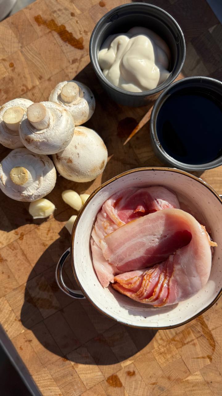 - Заверните бекон вокруг гриба, чтобы он полностью его обернул.