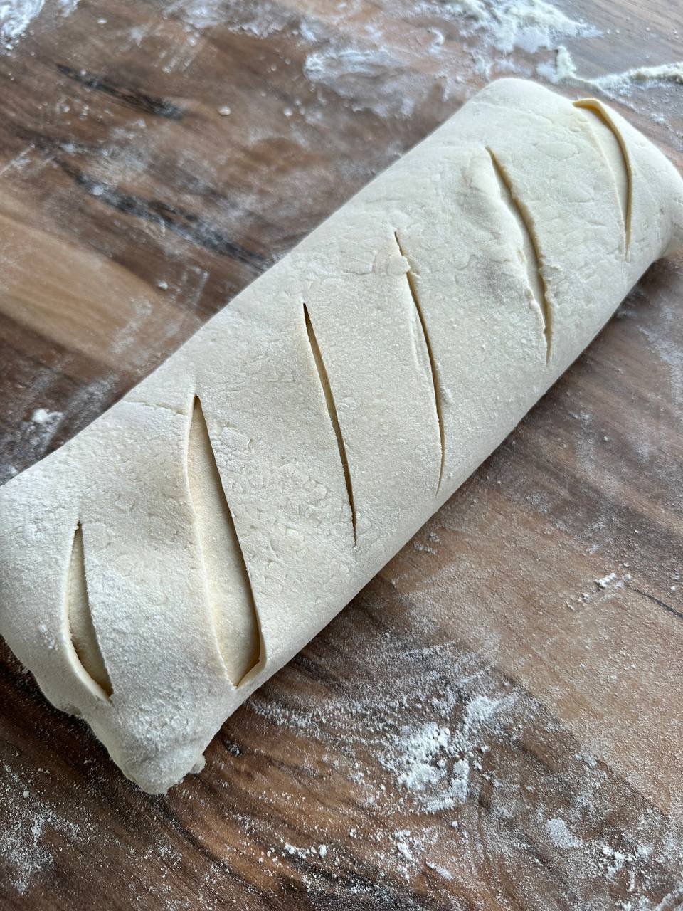 - Предварительно размороженное тесто раскатываем