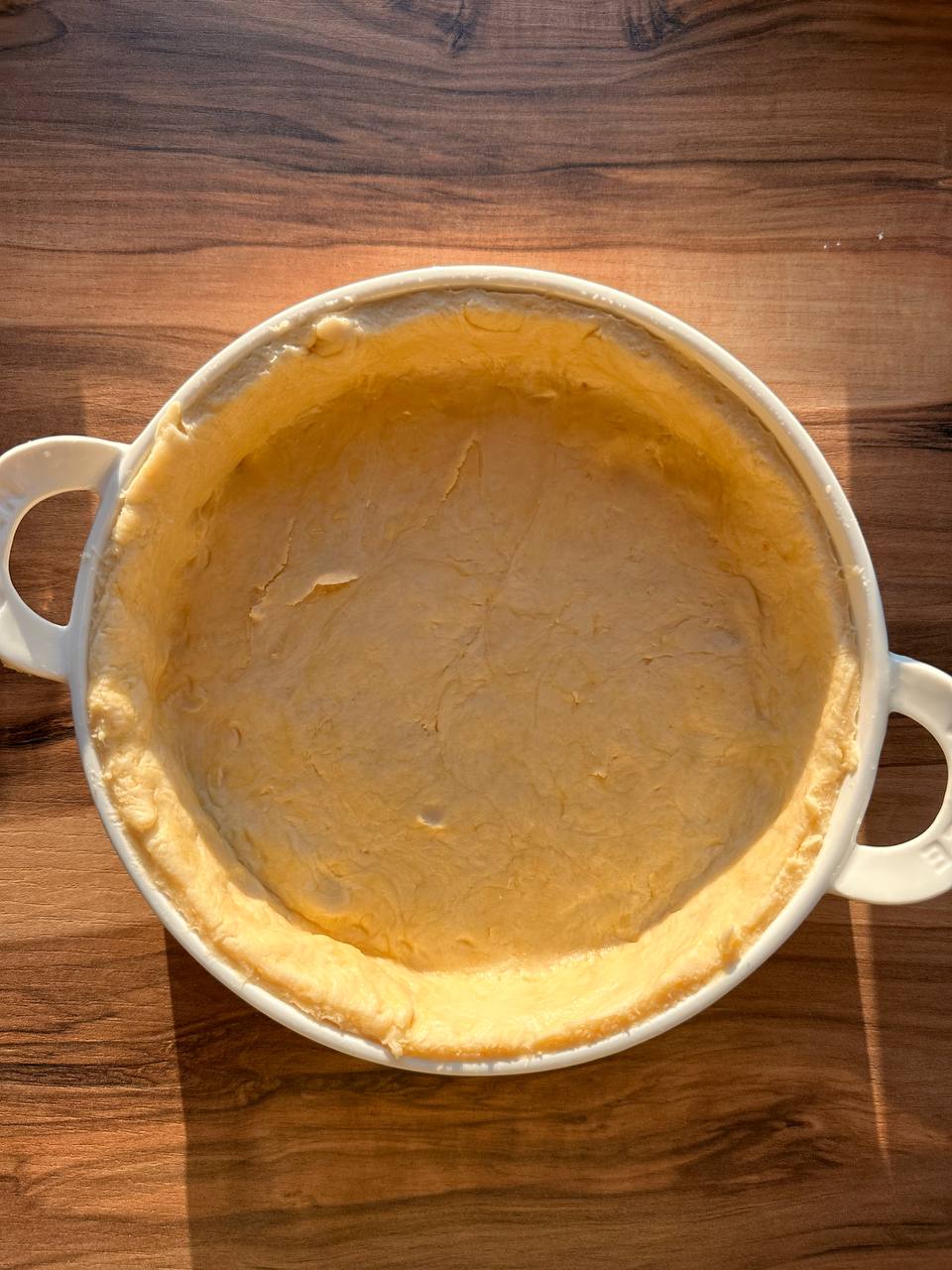 - Форму смазываем маслом, равномерно заполняем ее охлажденным тестом